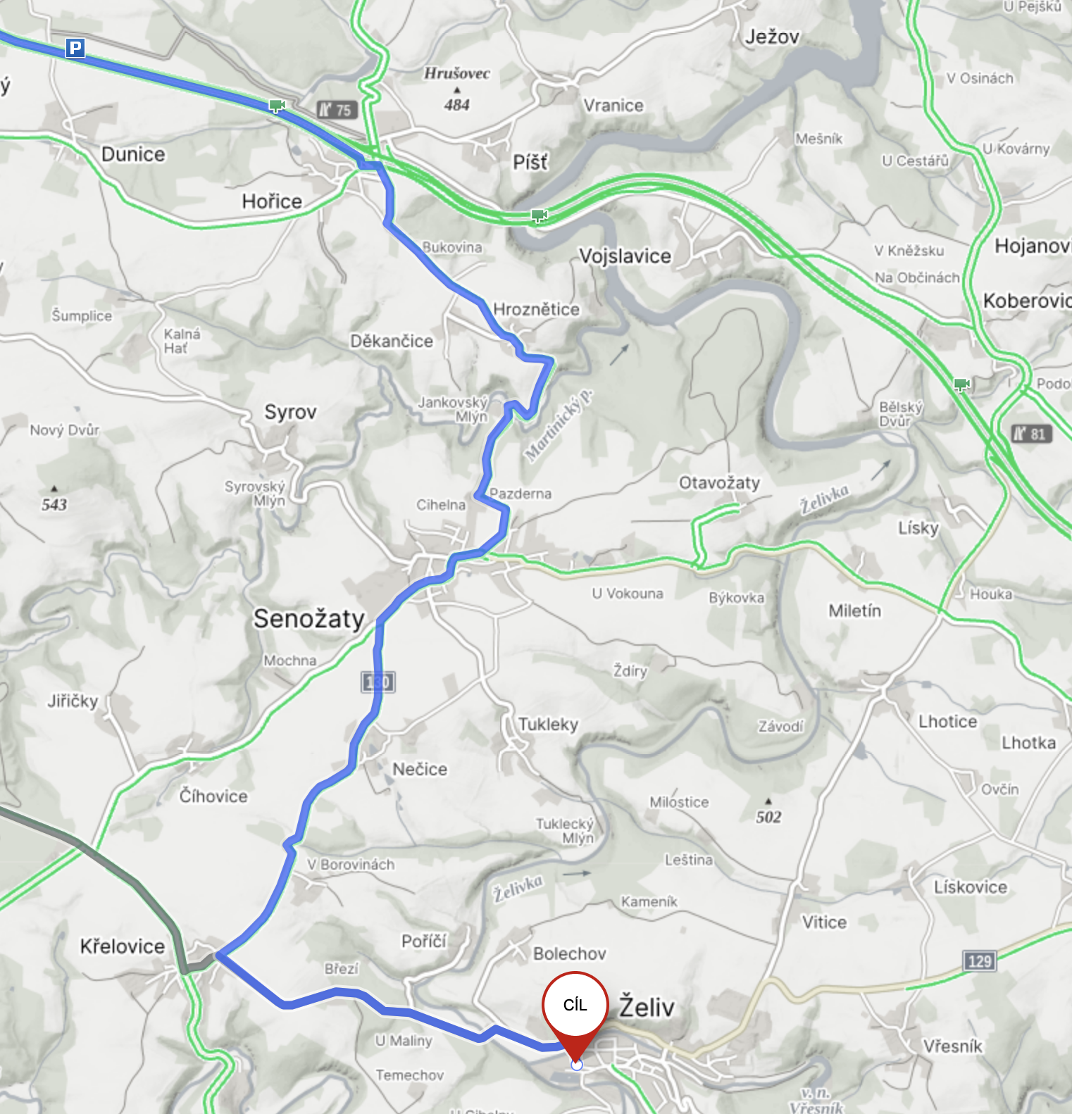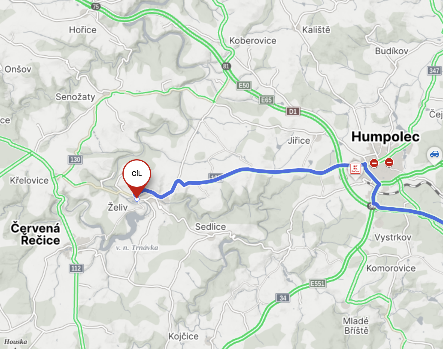 Pokud jste ubytování v hotelu Kocanda, je třeba se řídit pokyny hotelu, který se nachází zde, 6 minut schůze, 2 minuty autem (Želiv 4, 39444 Želiv, Česko).