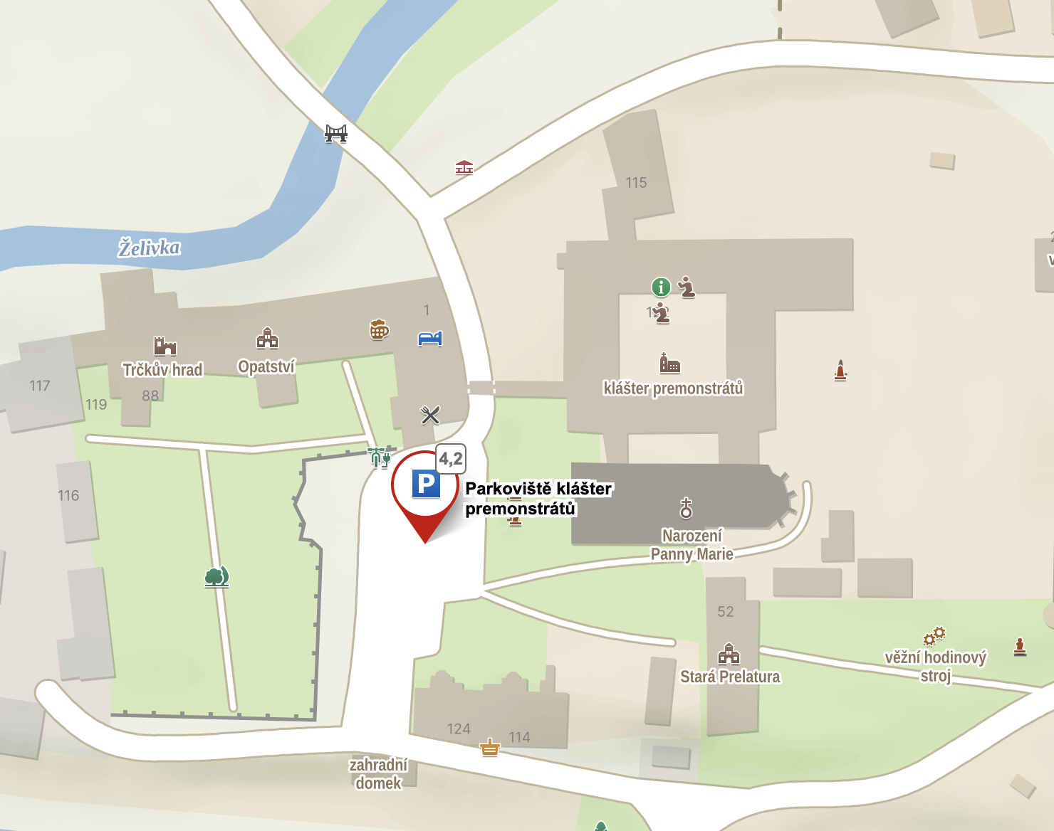 Vyhrazené je parkování na nádvoří před klášterem: https://mapy.com/s/delecekoku