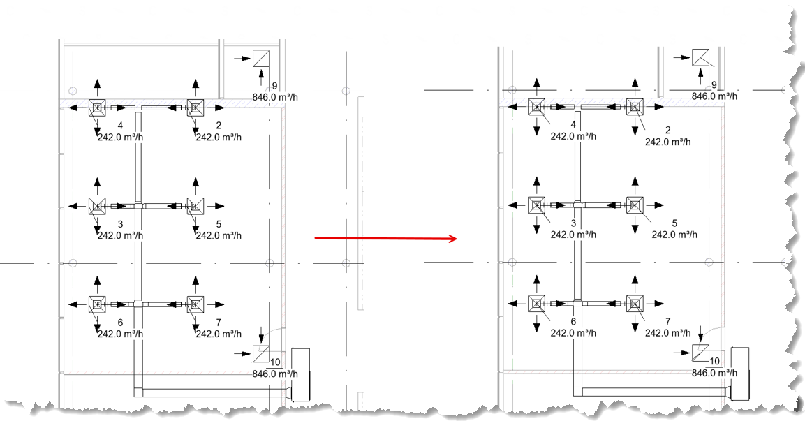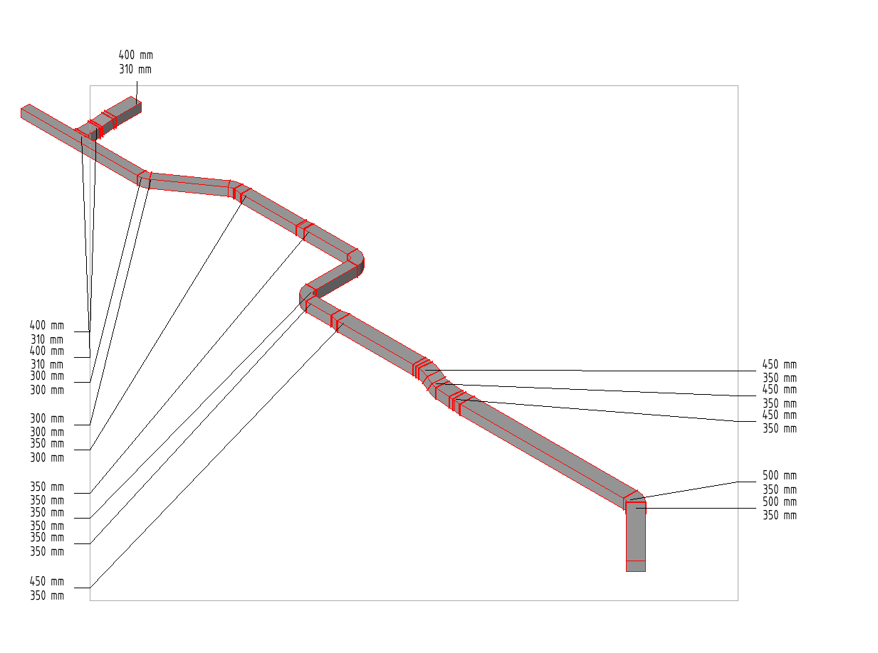 Nástroj Popis potrubí automaticky umisťuje popisky do vybraných potrubních větví v místech, kde dochází ke změně hodnoty parametru. Pokud je do popisky např. zahrnut parametr DN potrubí, automaticky se vloží v bodě změny dimenze. Tímto způsobem je zajištěna úplnost a přesnost technické dokumentace bez nutnosti ruční editace.